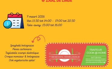 Op 7 maart organiseren we samen met ’t Beneden Hemelrijkje een heerlijk pastafestijn!Geniet van een ruim assortiment, van een klassieke pasta bolognaise…